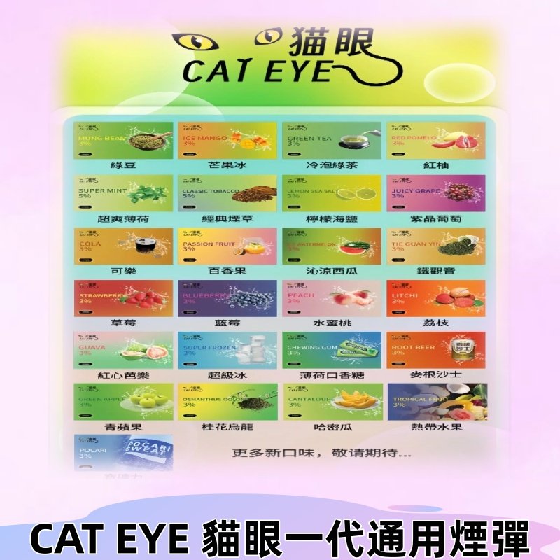 貓眼一代煙彈系列精心挑選高品質煙油,經過精密配方調配,讓每一口煙霧都散發著濃郁的香氣和純正的口感,令人心曠神怡。